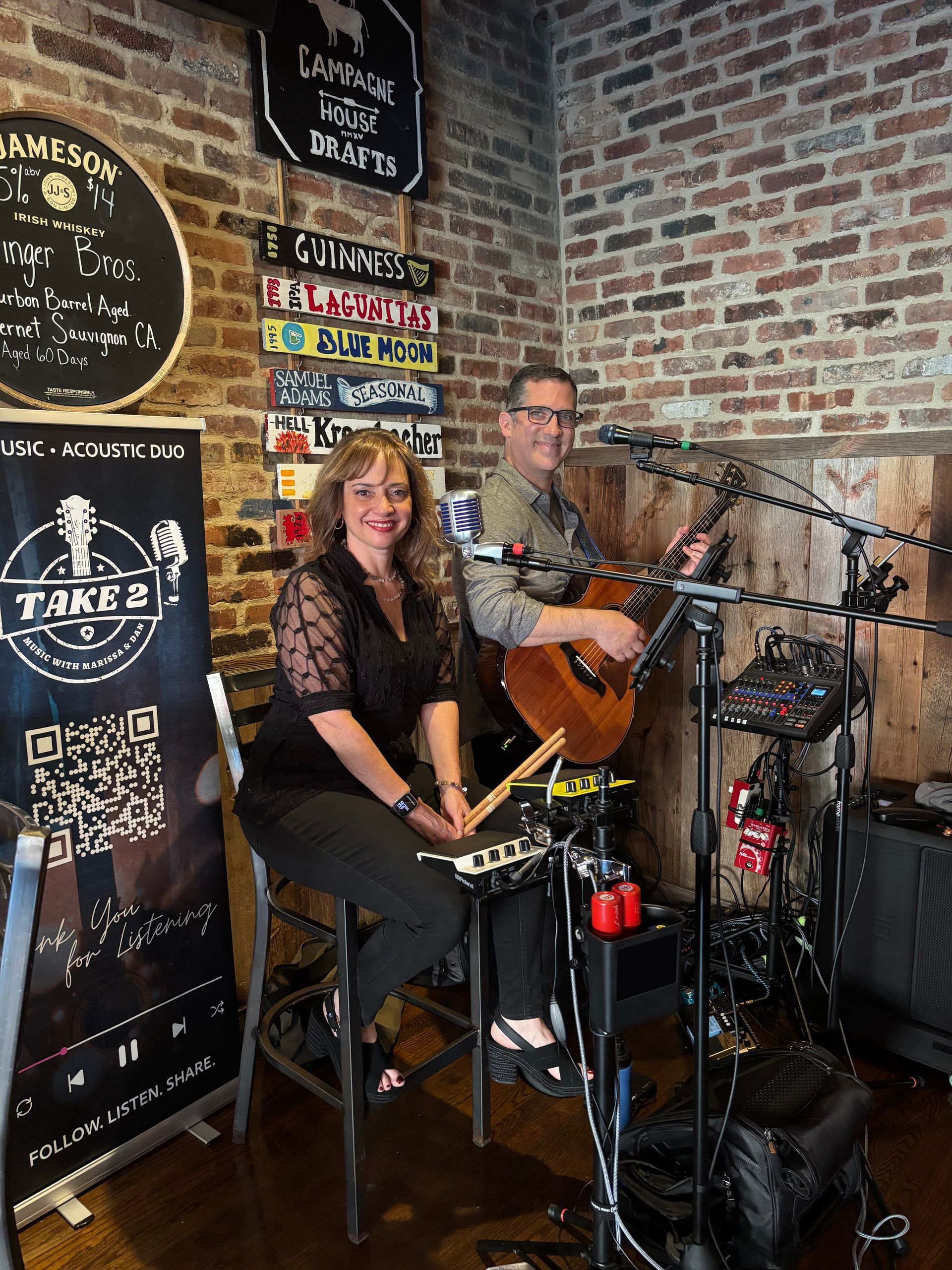 Take 2 are Dan Reardon and Marissa Candela, a dynamic duo with vast musical histories. Both members bring a blend of talents to the mix with blissful harmonies set to an array of catchy, diverse songs that span the decades. Dan is a skilled pianist, rhythm guitarist and dynamic singer. Marissa is a seasoned vocalist and percussionist who fronted Long Island bands. Together, Dan and Marissa make Take 2 a unique and fun live listening experience that is perfect for all types of local venues.